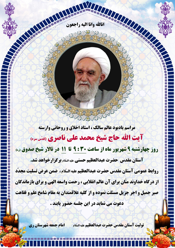 © تمامی حقوق مادی و معنوی این پایگاه متعلق به آستان مقدس حضرت عبدالعظیم (علیه السلام) می‌باشد. استفاده از مطالب با ذکر منبع بلامانع است.